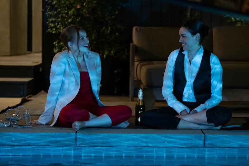 At another house, Lake and Lucy chill with their feet in a pool when Lake checks her phone to see if Felix texted her. Lucy asks if she’s sad about Felix. Lake says yes, but he also helped her stop caring what other people think. In turn, she asks if Lucy is sad about Andrew. She also says yes and that he helped her realize things about herself. A door opens from inside the house, and Lucy gets them out of there. She doesn’t actually know whose house it is.