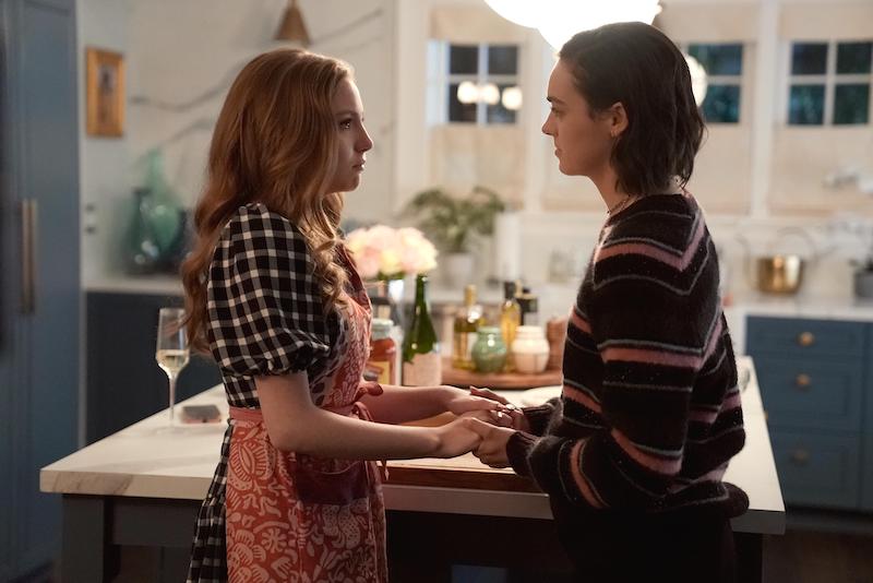 Lake works on making a pizza when Lucy arrives. Lucy is confused because she thought they were going to talk about Portland, but Lake says she just wants to enjoy their time now. When they kiss, Lake pulls away, which tips off Lucy, who says they need to talk. Lake doesn’t want to but quickly caves and shares that she doesn’t understand why Lucy has to leave. Lucy explains that she’s been sad since her mom died, and now her stepmom hates her, and her dad won’t look at her. She wants a fresh start. Lake responds that she can’t keep falling in love with Lucy, and Lucy realizes what Lake is suggesting. Lake doesn’t want to break up, but she thinks they have to. Later, Lake goes to see Felix because she didn’t know where else to go. She tells him what happened, and he hugs her and says she’ll be okay.