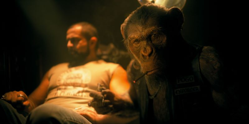 Klaus and Five are still sitting in the lobby, and when Five shows him the tattoo that he cut off of his older self, Klaus tells him that it’s a symbol for a biker gang: the Mothers of Agony. Five immediately heads to the bar where the gang is located, and in the back room he finds none other than Pogo.