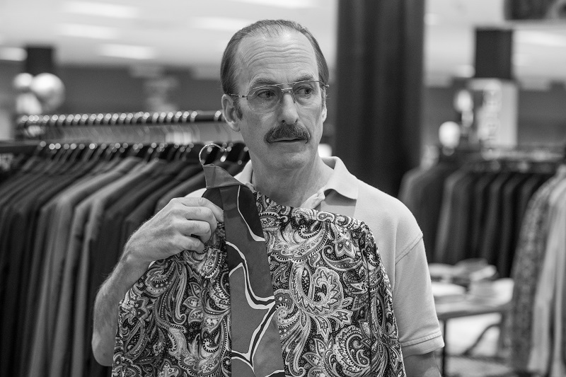 The episode ends on a very interesting note. Gene is back in the high-end department store, browsing on his lunch break. He sees a very busy paisley shirt and a very loud tie. (Even in black-and-white, the clash hurt my eyes.) He holds them up to himself and looks in a mirror, and for a brief moment, he is Saul Goodman again. But he puts back the shirt and tie and leaves the store. Maybe he has left Saul for good.