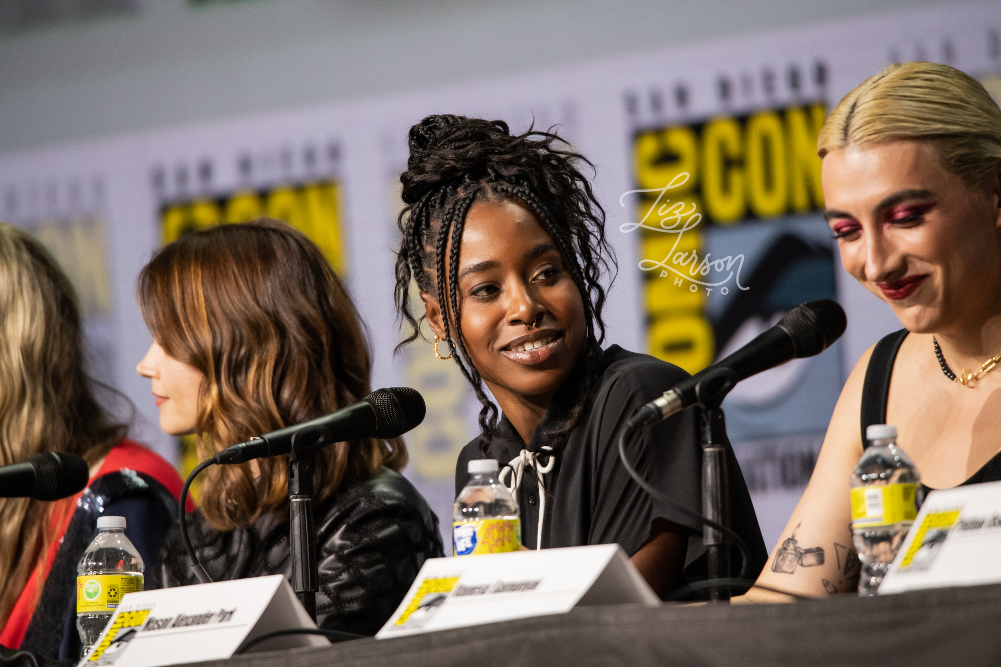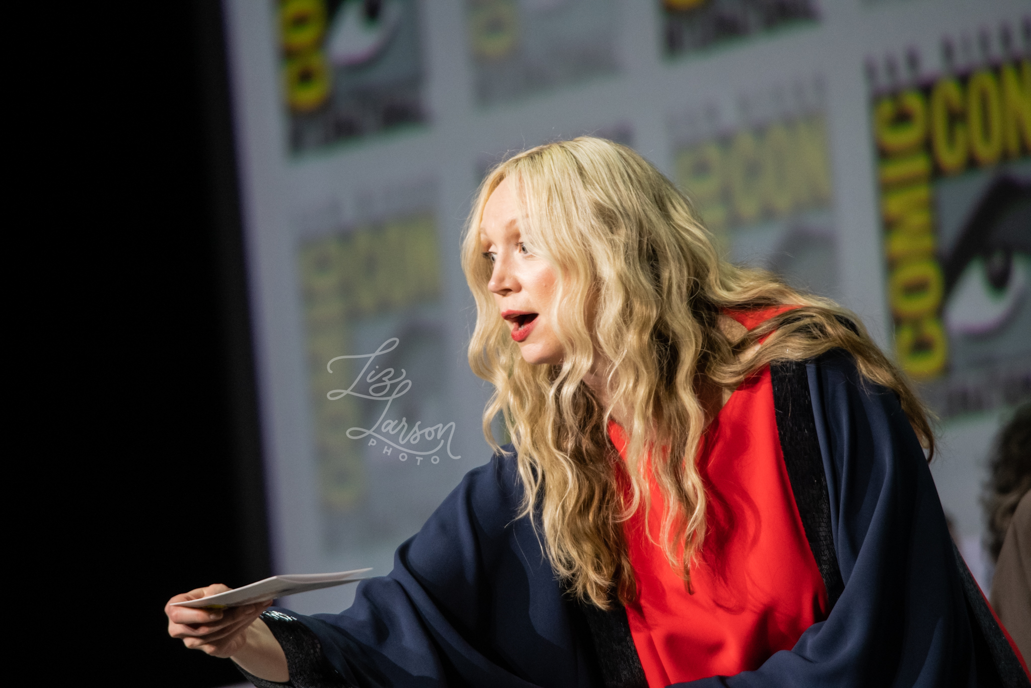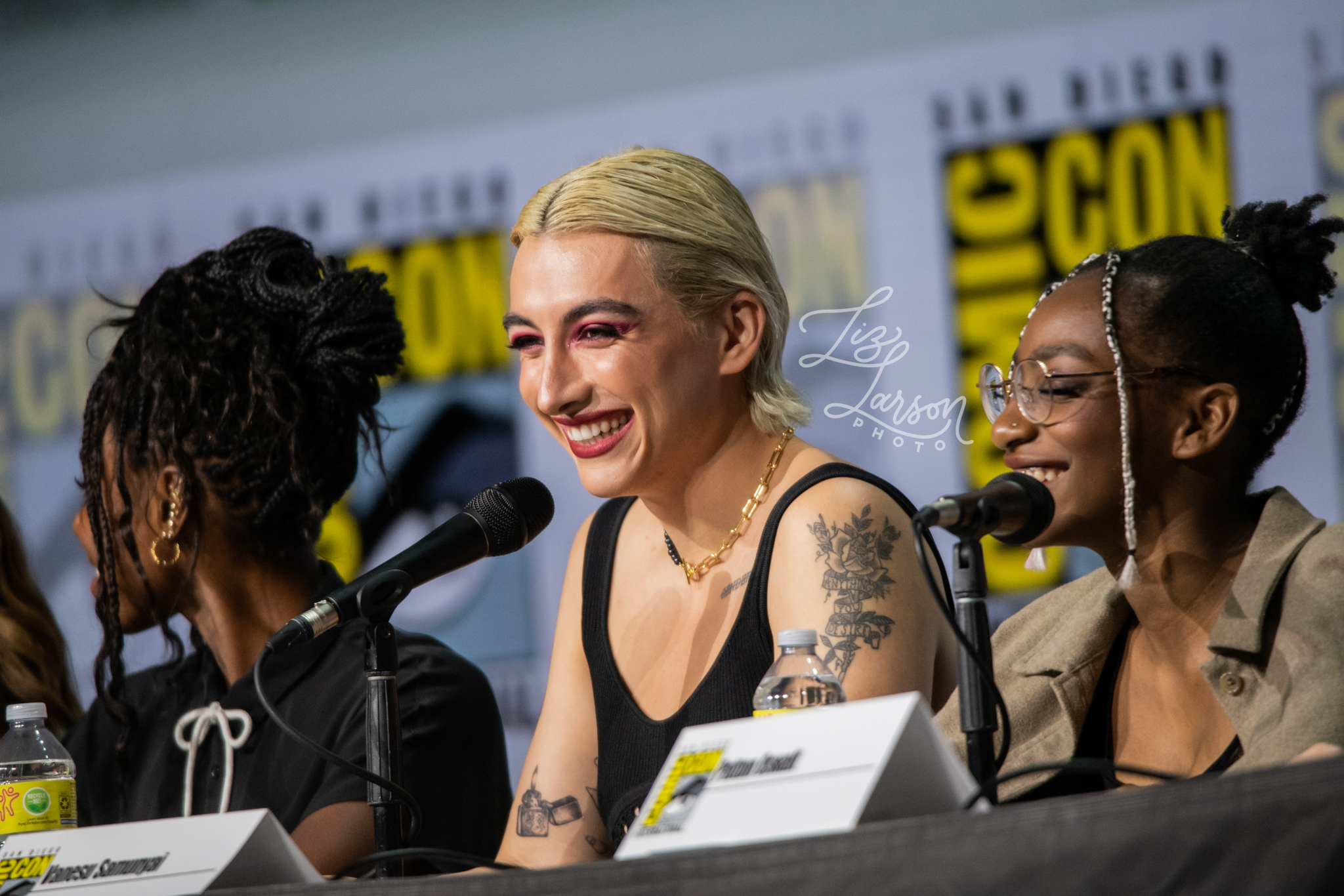 At the panel was Neil Gaiman, Tom Sturridge, Gwendoline Christie, Jenna Coleman, Boyd Holbrook, Kirby Howell-Baptiste, Mason Alexander Park, Vanesu Samunyai, Vivienne Acheampong, and Patton Oswalt.