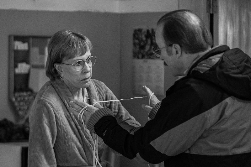 When Marion threatens to call the police, Gene rips out the phone line from the wall and menacingly tells Marion that she needs to just keep quiet about what she’s found out. He is wrapping the phone cord around his hands as if he plans on strangling her, but Marion has one more trick up her sleeve: her Life Alert pendant is around her neck, and she’s ready to push the button. Gene moves to rip the pendant from her neck, but when Marion tells him that she trusted him, he falters. Marion takes the opportunity to signal the Life Alert operator and tells her that a wanted fugitive is in her kitchen, and his name is Saul Goodman. The operator says that she is contacting the police, and Gene runs out of the house.