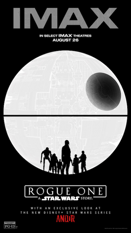 Rogue One: A Star Wars Story is returning to IMAX theaters for one week ahead of the premiere of Andor on Disney+ beginning August 26. The re-release will also feature an exclusive sneak peek at the series.