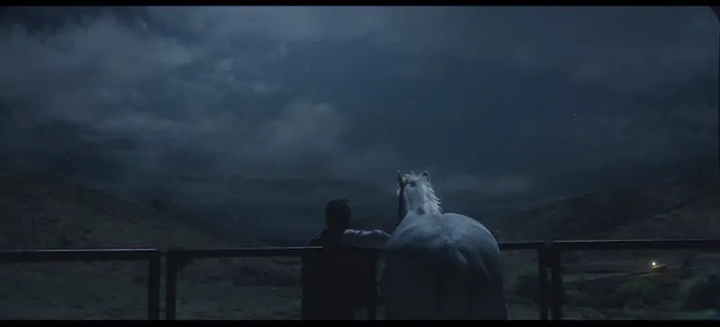 In post-production that’s what we did. We kind of created those techniques to kind of colorize the infrared footage, and then running the shots through the computer we then managed to extract the depth of the shots – the distance from the camera to the to the hills and the sky so then we could create the colors and the lights through the depth of the scenes. Basically the way it happens at nighttime. So we kind of created those kind of hybrid nights. All the night shots you see in the movie all have a component of daytime photography. It’s like they’re basically working, just shooting them in this California desert in 100 degrees heat, and be like, okay that’s gonna be nighttime when we go in post-production. And that was a bit of a leap of faith for all of us because we were like, okay, we know, we tried it, and we experimented with the technique, but we initially took the bets of like, okay, well that’s how we’re gonna do all our night scenes and create those really immersive nights. I think that was really a desire from all of us, is like when you, at night, suddenly you see the hills, and the eeriness of the empty space and the sky above you, it felt much scarier than if we had done claustrophobic lights.