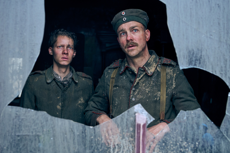 All Quiet on the Western Front stars Felix Kammerer (Paul Bäumer), Albrecht Schuch (Stanislaus “Kat” Katczinsky), Aaron Hilmer (Albert Kropp), Moritz Klaus (Franz Müller), Edin Hasanovic (Tjaden Stackfleet), Adrian Grünewald (Ludwig Behm), with Thibault De Montalembert (General Ferdinand Foch), Daniel Brühl (Matthias Erzberger), and Devid Striesow (General Friedrich).