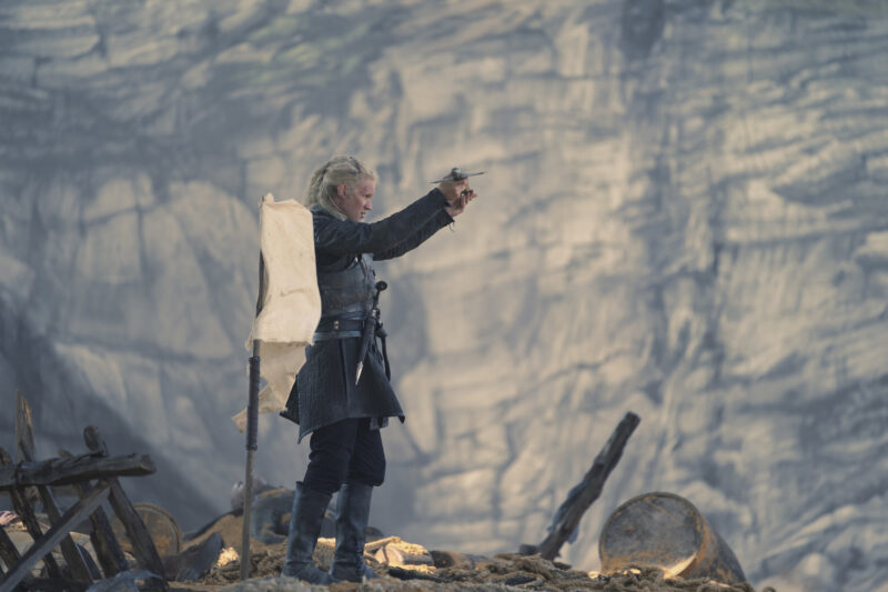 The battle that follows is stunning. Director Greg Yaitanes (Lost, Castle Rock) and cinematographer Pepe Avila del Pino (Ozark, The Deuce) deliver the first battle sequence in House of the Dragon that feels worthy of the award-winning scenes Game of Thrones was known for. Daemon fights off several warriors at once while the Crabfeeder watches, and just when a few well-placed arrows seem to spell doom for the prince, Laenor and his dragon Seasmoke sweep in along with the rest of the army. Matt Smith does his best work yet in this episode, especially in this scene. Not even reacting to the carnage around him, a single-minded Daemon stalks to the caves where he knows the Crabfeeder waits. With no fanfare, the Crabfeeder is killed offscreen. A bruised and bloodied Daemon drags what remains of his body to the sea, leaving him to be eaten by the crabs.
