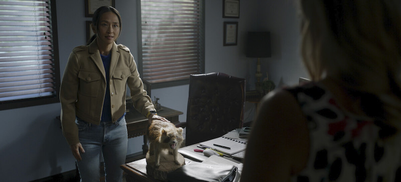 Yolanda hides her JSA activities from her mother by claiming she’s working extra shifts to help the family after her father lost his job. The group heads to the trailer to investigate the crime scene, but it’s been wiped clean. Stressed and suspicious, Yolanda accuses Cindy again. But Cindy just says that if she did it, she would have made sure Sylvester was dead. The goggles detect a skin cell on the counter that doesn’t belong to Starman, so it must belong to the attacker. Beth and McNider analyze the cell, which isn’t human or identifiable. But McNider suddenly remembers where he’s seen this kind of result before: Cindy’s father, the Dragon King.