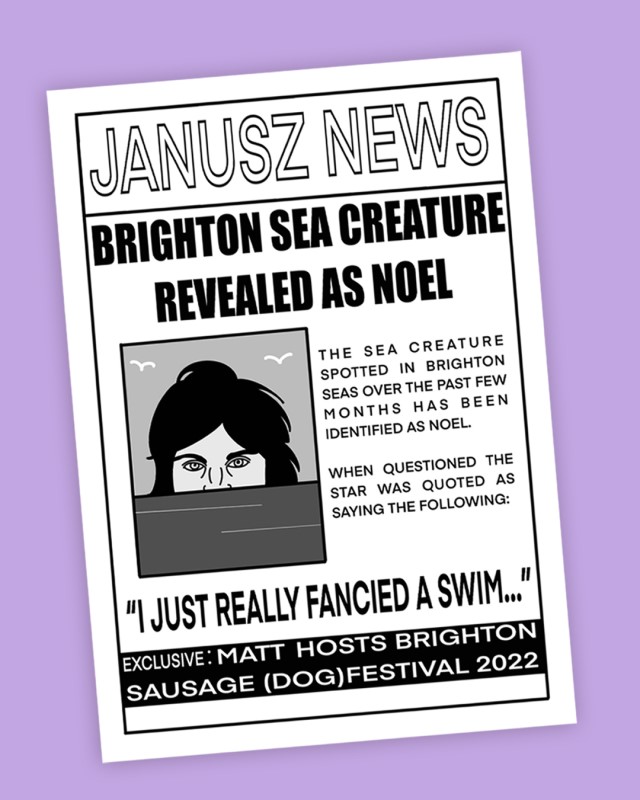 - For his fish and chip-inspired showstopper, Janusz had newspaper printed that featured host Noel Fielding.