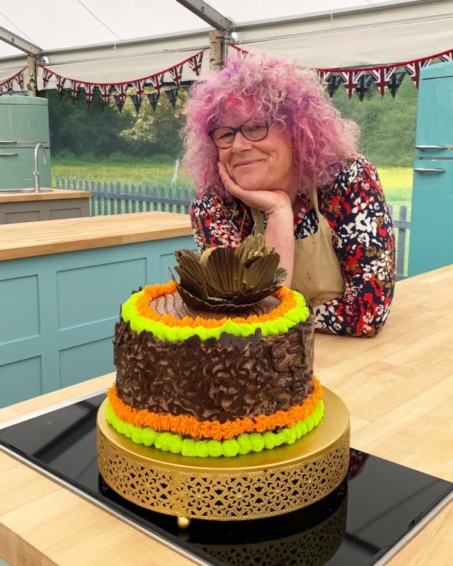 Carole made a chocolate tres leches cake with a coffee liqueur soak. It was filled with a chocolate hazelnut ganache and decorated with lime and orange buttercream, a chocolate collar and hazelnut caramel spikes. It was vibrant and the judges loved the look. However, the cake was not soaked all the way through; the piece of cake that Prue had was not soaked at all! The cake was well made but the chilli flavor was too strong.
