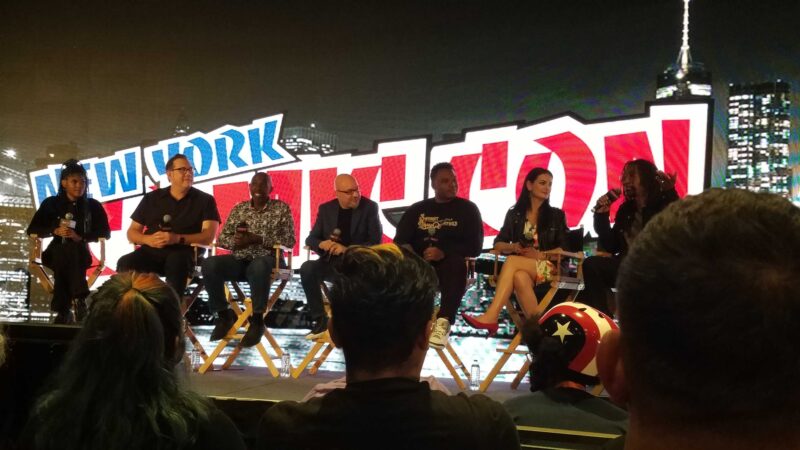 The group then dived into the characters of the show, and the importance of community and family embedded throughout the series. White was especially proud of what Lunella brings to the screen as a teenaged Black hero who’s brilliant and a little weird (in a good way). Clouden added how White encapsulates Lunella, praising her talent as a multi-hyphenate. He also commended Tatasciore for the work he put in as Devil and said that Williams is “as smooth as his head.” (File that away as compliments to use to later.)
