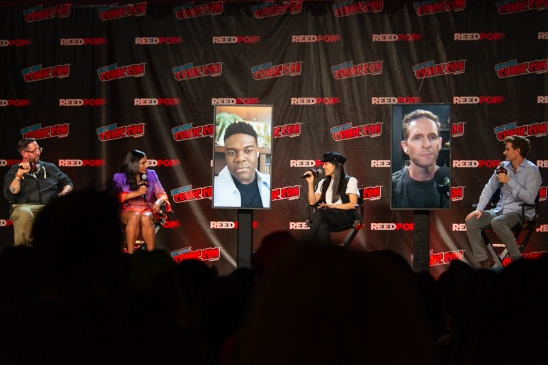 Ahead of the cast coming on stage, fans had the chance to watch the very first episode of the series. It was a blast not only to watch the actual episode but to hear everyone else’s reaction. It seemed the consensus was that the episode was hilarious and overall entertaining, with fans enthusiastically cheering afterward. (Can confirm the episode was fantastic.)