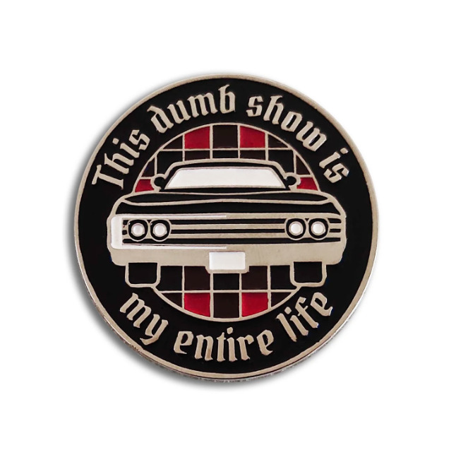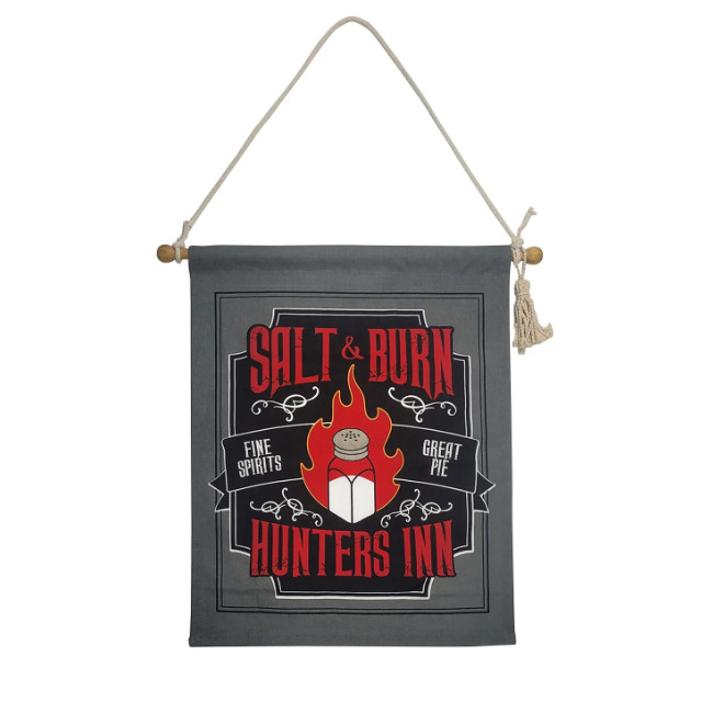 Some of the items listed include a Salt & Burn Hunters Inn banner, “This Dumb Show is my Entire Life” pin, “Not the Lose-chesters” pin, an Always Keep Fighting bracelet, anti-possession and Castiel rolling pins, shirts, the Impala plushie and more.