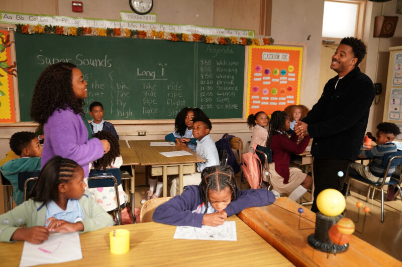 After school, Erica suggests some plans to Janine, but she can’t go because Tariq is going to pick up his stuff from her place. Erica isn’t so sure of this, as Janine and Tariq have history. Instead, Janine will meet him in the school parking lot the next day. But Tariq decides to show up during her class. She doesn’t stay annoyed for long after seeing how excited her kids get to see him.