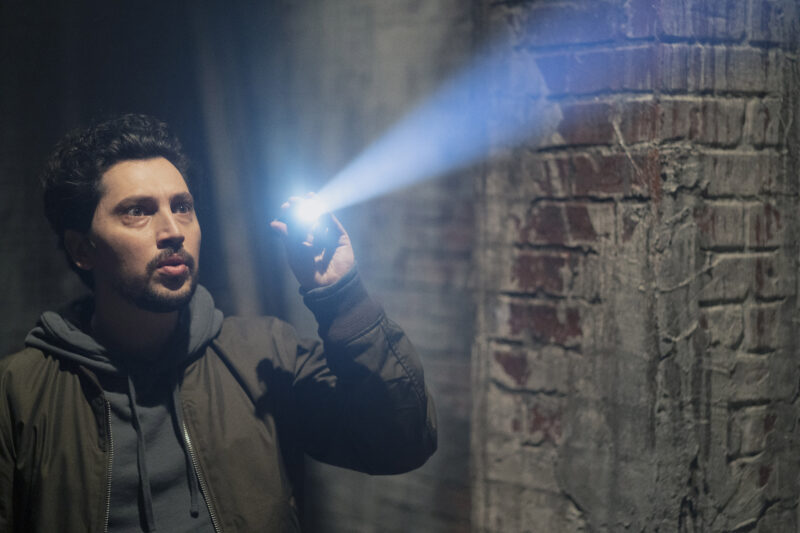 Michaela and Saanvi follow the compass, and it’s telling them to go into a building … the building with the boiler room where they hid Thomas. The compass leads them to an empty room, but it’s not so empty as Eagan comes crashing through with Kenroy.