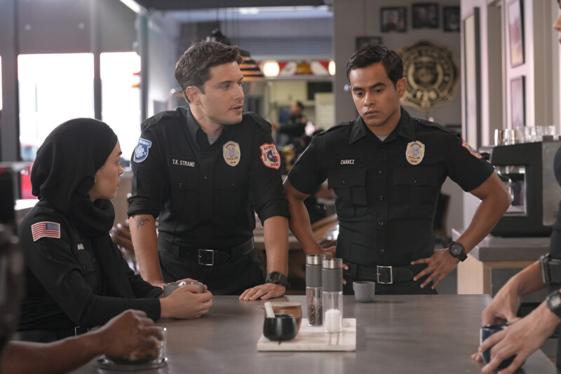 The team is in for quite the unique call when a man tells 9-1-1 that his girlfriend fell off a cliff at a nearby park. The team arrive to repel down and discover that the “girlfriend” was never alive to begin with. She’s a sex doll. Dispatch is able to reach the man’s therapist who informs them he has attachment issues. The man babbles about how he was planning to break up with her so the team decides to lean into the man’s delusions and hauls her up the cliff. Nancy and T.K. perform CPR vigorously in front of the man before “calling it” and letting him know she didn’t make it. He’s not nearly as torn up about it as one might think, but seems ready to move on. Somehow, the team doesn’t crack a smile the entire time.