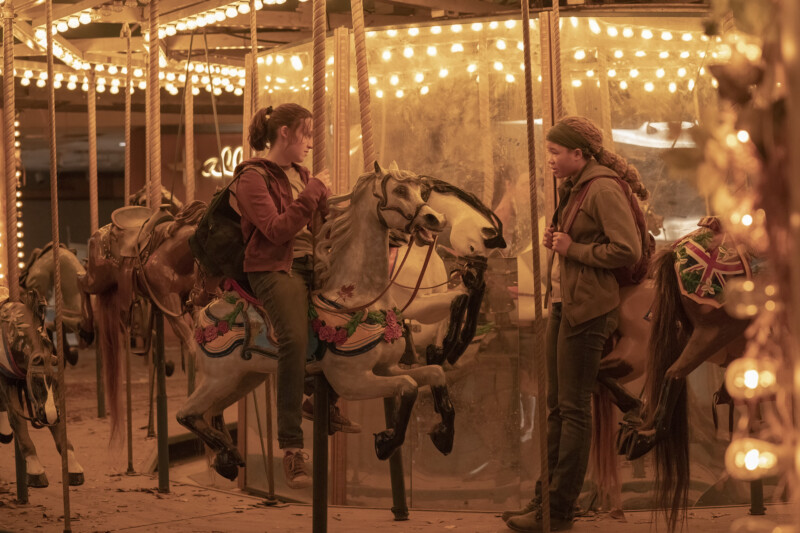 In their last hurrah, they don Halloween masks and dance to the music on Ellie’s Walkman before Ellie begs Riley not to go. Riley agrees, and the two share a kiss. The moment is interrupted when a runner emerges, Riley taking it down with her handgun. Riley is knocked out as they run, leaving Ellie with just her switchblade. The two manage to get out of the situation, Ellie sinking her knife right into its head, but it’s too late; they’ve both been bitten.