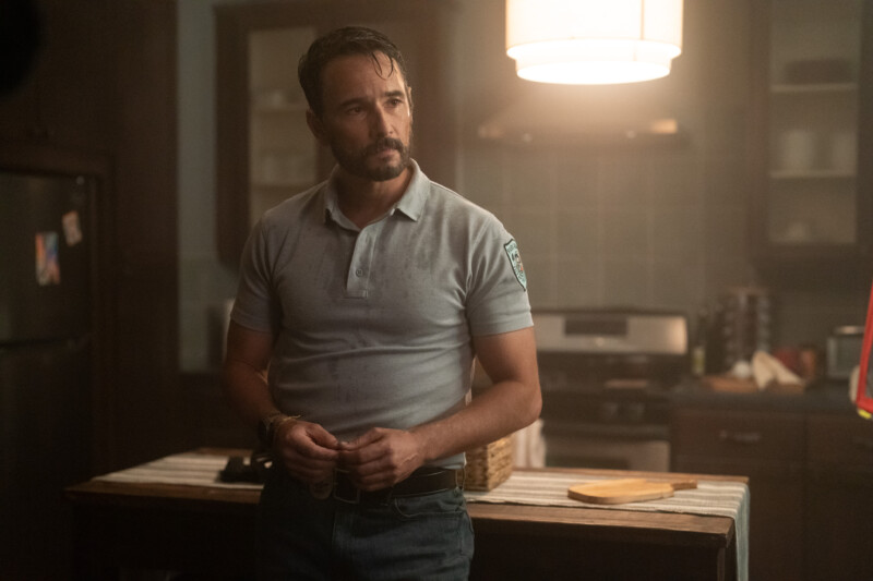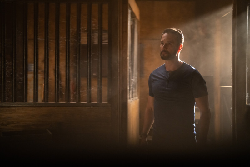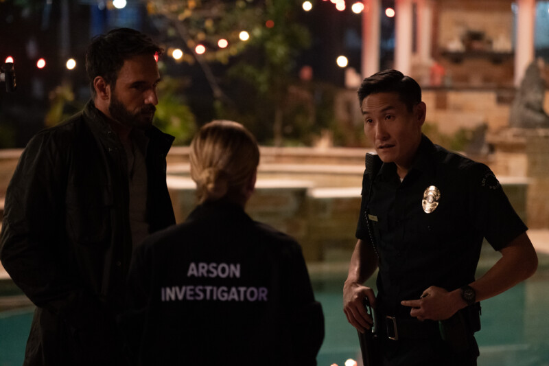 From the photos, it looks like the LAPD (and the task force) have crashed the party, and the pack (with Cyrus) seems to be conspiring. What exactly? Your guess is as good as any! But … what is Garrett pointing his gun at?