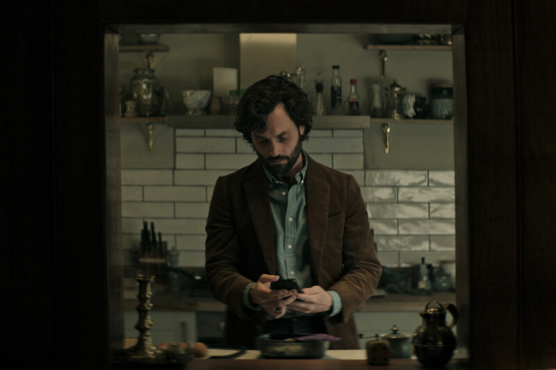 Surprise, surprise — Joe Goldberg is back to wearing a baseball cap and stalking, this time donning the “disguise” to attend a public speech held by Rhys as part of his mayoral campaign. Rhys is certain the Eat the Rich Killer will be caught by the police and reassures his audience of the fact while Joe continues disdain-filled internal monologues. Rhys hardly pays Joe a glance as he walks past him, though someone else has their attention on Joe in the crowd — a woman recording on her phone.