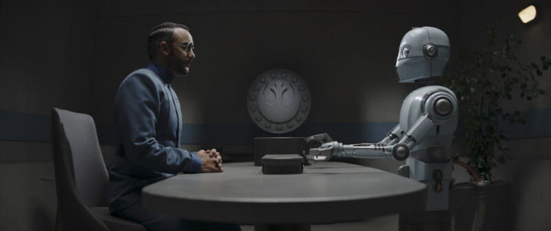 The series is beginning to fill in some blanks in Star Wars history, one being exactly what happened to all those Imperial officers. Dr. Pershing, Moff Gideon’s cloning scientist, answers that for us as a new member of the Amnesty Program on Coruscant set to rehabilitate Imperial officers into the New Republic. He’s giving a speech on his work, and how he wanted to use it for good and it just got twisted along the way.