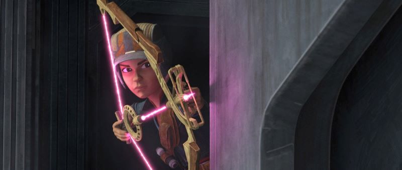 Meanwhile, the clones are trying to find Hemlock’s ship. Hunter, Echo, and Tech are headed to the control room to access the hangar manifest while Wrecker and Omega stay behind to plant the homing beacon. Tech calls Omega to tell them that Hemlock’s shuttle is at docking lane four. In the control room, Echo is worried that the surveillance systems are deactivated in several corridors. Hunter and Tech go to check it out while Echo stays in the control room. In the hangar, Omega is making her way to the ship since Wrecker will gather too much attention. She is able to plant the beacon but can’t move because she is surrounded by clones. Echo takes control of one of the cranes and picks one of the ships with it to cause a diversion.