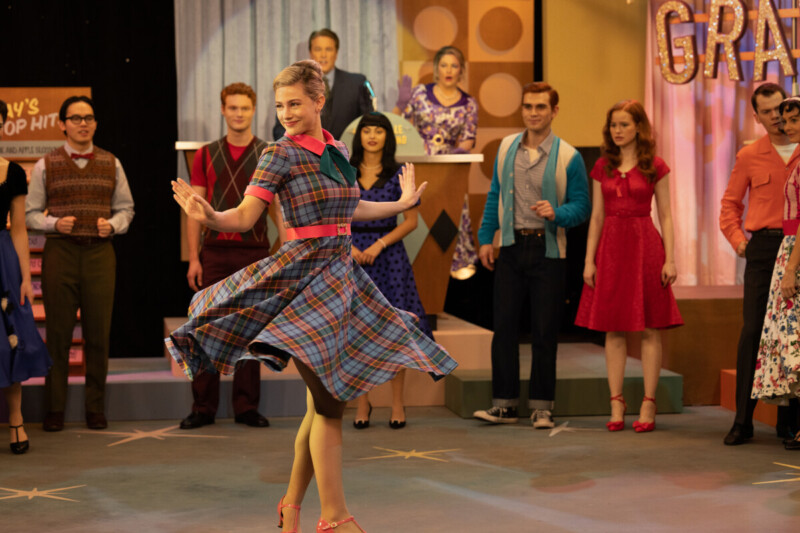 It’s the 50th episode of Grandstand, so many students have shown up to dance, including Veronica and Archie. Betty’s off to the side, just sitting and watching, until she gets up to dance during the twirl, against her mother’s wishes. She’s the only one on the floor twirling, purposely showing off her underwear as she twirls and twirls and twirls. Alice talks with Betty afterward, telling her she’s out of control. Betty, however, assures her mother she is in complete control. She knew exactly what she was doing and why. She asks to be excused from future episodes, and Alice tells her she’s off the show. But she broke her heart.