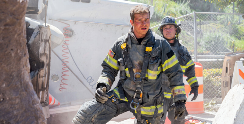The 118 arrive on the scene, immediately getting to work and separating to help victims. They work to get the mother and daughter out. Chimney and Hen manage to pull Jo out while Mallory is unconcsious. Chimney calls for an air ambulance, and Jo is worried about her mother. Meanwhile, Chimney and Eddie help Mallory, who is now awake, but has a likely spinal injury that is likely temporary. Mallory admits Jo isn’t her daughter but her best friend’s daughter. They were on a trip to honor her memory.