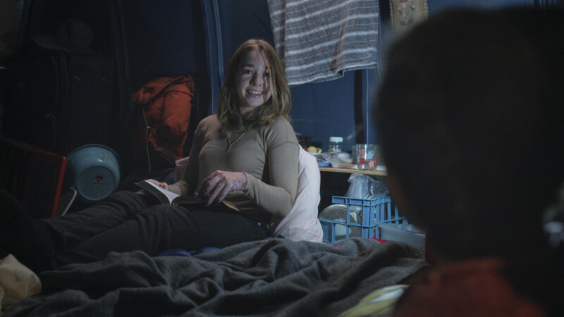 Saanvi talks to Ben during his Calling, and Ben comes out of the Calling, finally. He sees what he did on the wall. They both try to figure out what the Calling meant, and Ben notices the spacing, which is a path. Saanvi realizes it’s a map of the detention center, and as Ben’s kids like to say, they’re “going on a treasure hunt.” The two try to sneak back, and before they’re caught, they hide in a closet, and Saanvi tells Ben to follow her lead, and she kisses him so it looks like they’re only sneaking around so they can be together. Only it’s Vance who opens the door. He tells them there’s a surprise count later, so they better get to their rooms quickly. Vance distracts one of the guards, and Ben and Saanvi are able to slip away.