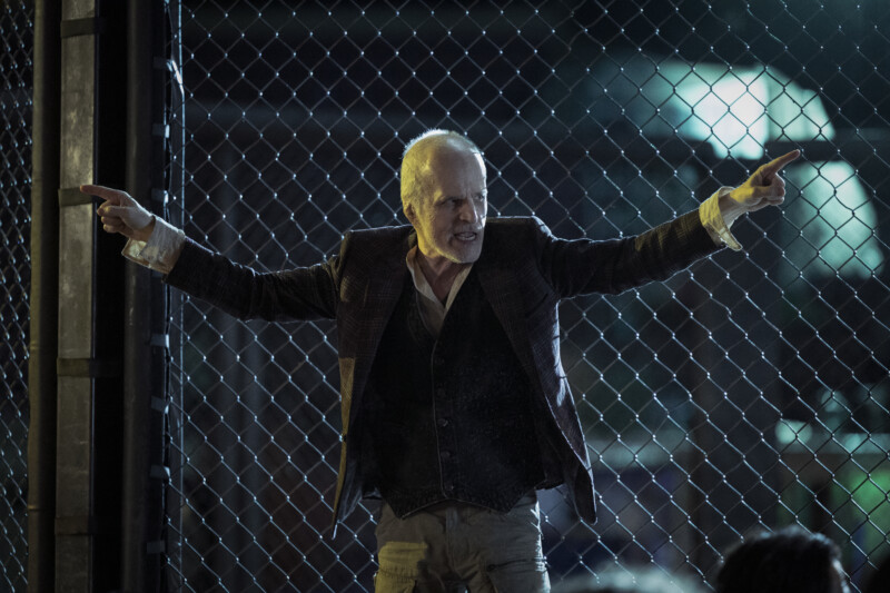 Later in the episode, Croat brings Armstrong down to the arena and drugs him. The guy Croat just killed enters the ring as a newly transformed walker and Armstrong manages to decapitate him with the handcuffs. He cuts him open and retrieves the key. As he does this, more walkers enter and Armstrong takes his shoe off to beat them down. Croat notices him fiddling with his shoes though and finds a letter from Armstrong’s family, reading it aloud. Armstrong is overcome with emotion and tells him to stop. He had two other men but now they’re dead. He’s just on the hunt for Negan. Croat looks as if he’s seen a ghost.