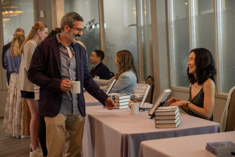 After spotting someone at the the Boardwalk reading Its Not Summer Without You, Steven shares with Belly that Laurel agreed to attend the book promotion event in New York and she even looked a bit nervous about it. Belly has a hard time believing that, but given how much Laurel seems to stumble through explaining the book to someone at the event, Steven may have been right. However Laurel’s weekend starts looking up when Cleveland stops by her table with coffee — although Laurel jokes that it’d better be wine. As always, Cleveland offers great conversation and support, reminding Laurel that though things may have fizzled between them, she can still talk to him about anything. She takes advantage, sharing her concerns about Belly, to which Cleveland shares that sometimes the best thing you can do is just be there for someone — even if it means climbing down into their hole of grief or depression just to sit with them. Laurel takes the advice with grace before turning the conversation around and asking Cleveland what he’s doing there since he’s not on the author list for the event. He coyly replies, “Would it scare you if I said I was here for you?” to which Laurel responds, “Depends where you take me for dinner,” before making plans to meet later.