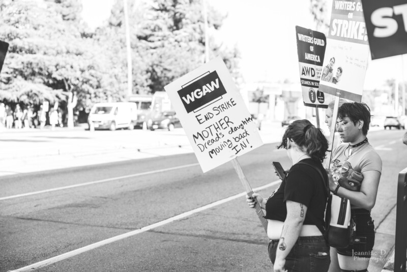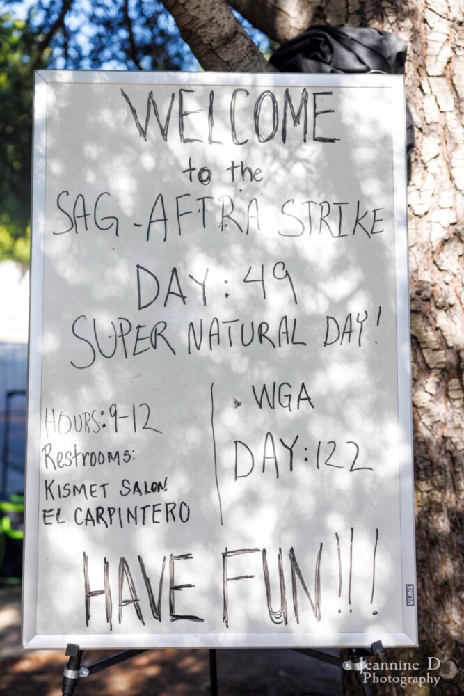 Many happy reunions were had amongst the cast, writers, and crew who hadn’t seen each other in years (especially since the show ended during the height of the COVID-19 pandemic). Everyone had a chance to catch up on hugs and laughs and mingled amongst the fans who came to say hi and walk the picket line in support while hanging out under a grassy tent-covered spot providing a bit of shade from the California sun.