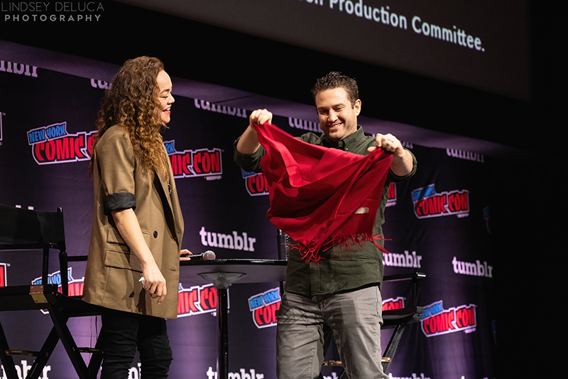 Series stars Bryce Papenbrook and Trina Nishimura, who voice Eren Jaeger and Mikasa Ackerman (respectively) in the English dub, took to the stage for a hilarious and emotional panel looking on the series, which included a special moment with Mikasa’s iconic scarf and a live script reading.