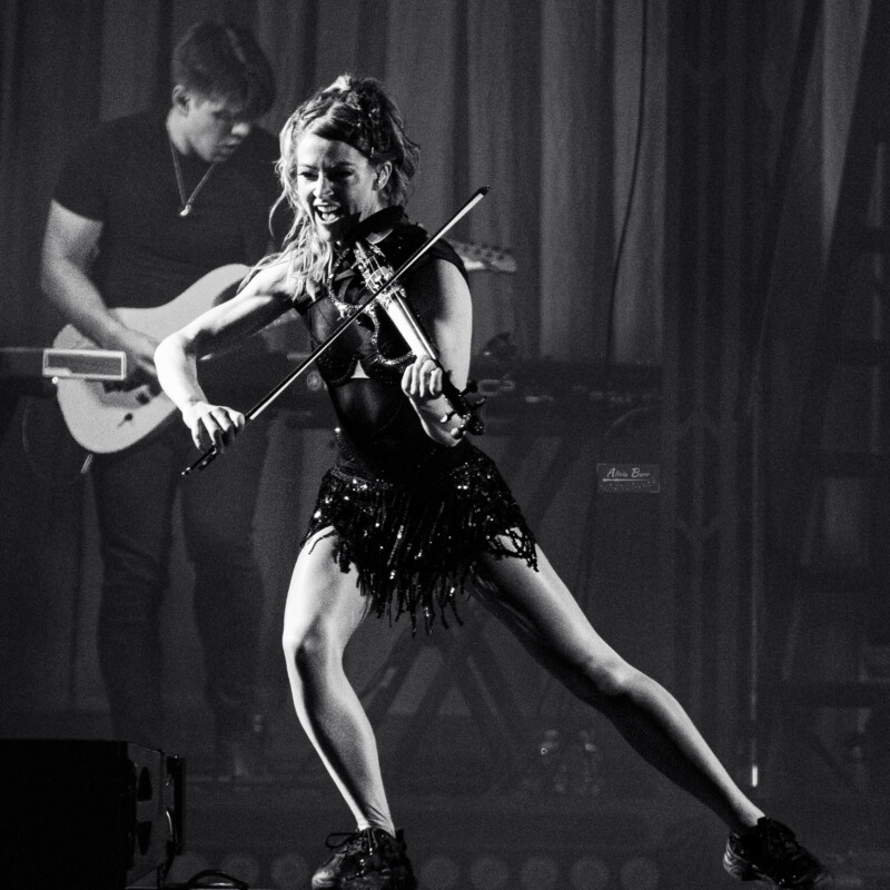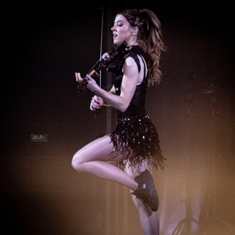 Next, Stirling danced around the stage, moving up and down stairs, as she played her violin to a choreographed performance that included backup dancers. The whole performance was electric and Stirling kept the crowd entertained and excited the entire time.