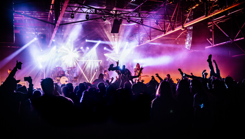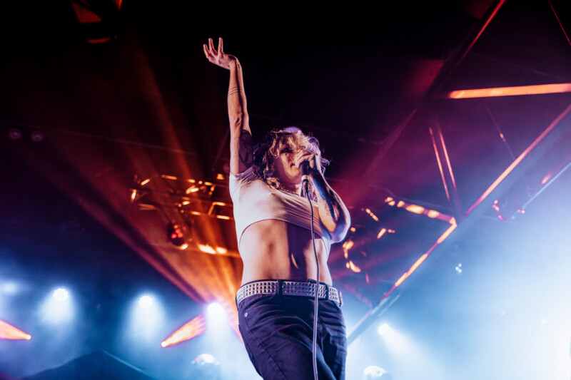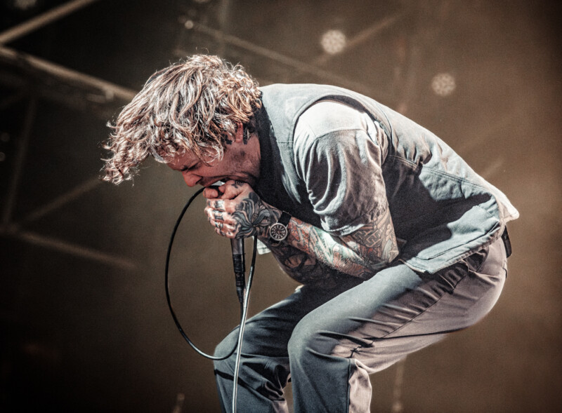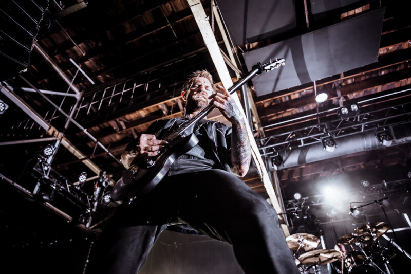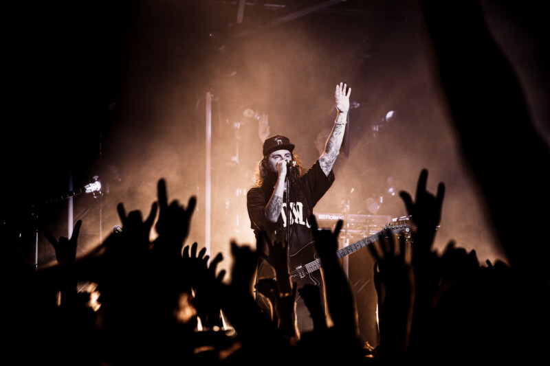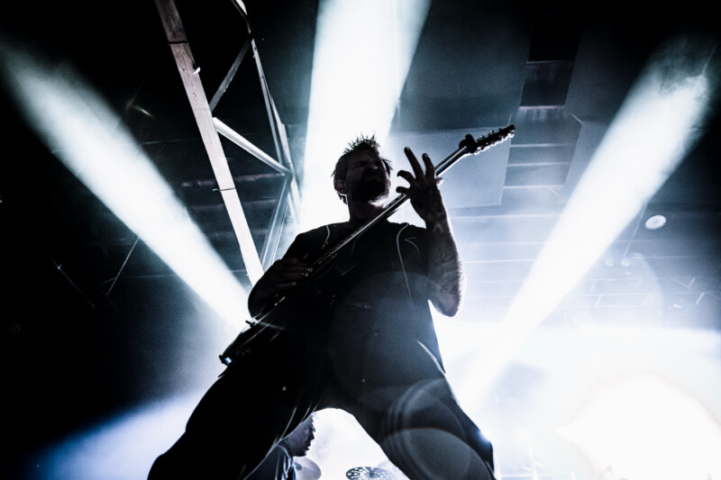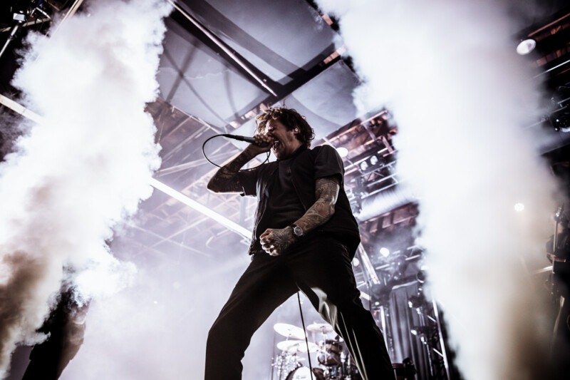 Finally The Devil Wears Prada took the stage. They came to a stage that was illuminated with tube LED lights and their emblem illuminated at the rear and smoke gently rolling in to create an ambience for the audience. You know when TDWP visits, they aren’t messing around and this night was no exception. Playing a setlist full of absolute bangers both old and new, they had something for every version of TDWP fan that was in attendance. They played favorites such as “Danger:Wildman”, “Watchtower” and one of my personal favorites, “Salt”. During several points in the night, they encouraged crowd surfers and were met with a sea of people floating through the air headed towards the stage. It was a sight to behold. There were other times when the circle pit was live and going. You could tell that everyone was there to have a good time. It is always a party at a TDWP show. They closed out the night with “Hey John, What’s Your Name Again” and a massive confetti cannon blast that covered the crowd in little paper pieces.