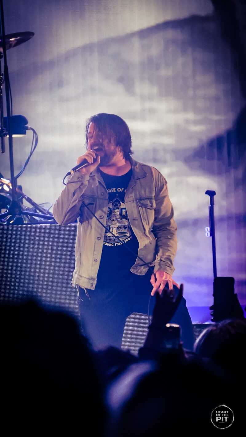 Rounding out the openers for this tour was Thursday, Melodic/Post-Hardcore royalty from New Jersey. Thursday has been bringing their music to crowds off and on again for nearly 30 years. Made up of 5 members (*inclu. touring members): Geoff Rickly (vocals), Jeff Gensterblum (drums), Wade MacNeil (of Alexisonfire on Guitar), Stuart Richardson (bass), and Steve Pedulla (guitar). Geoff tore through a solid 45-minute setlist, singing/screaming and discussing politics, drug addiction and broken legs, among other things. The crowd was with him for every minute.