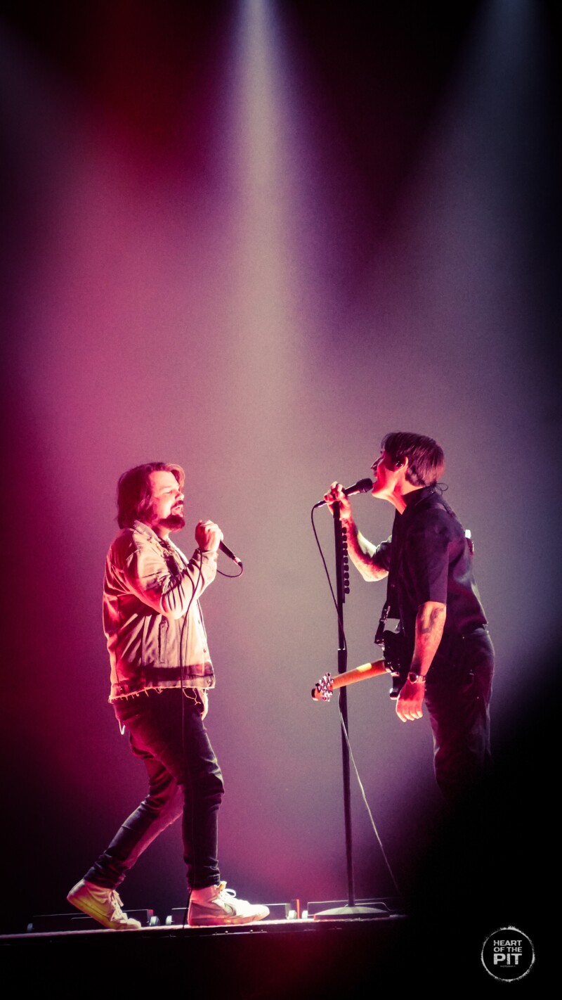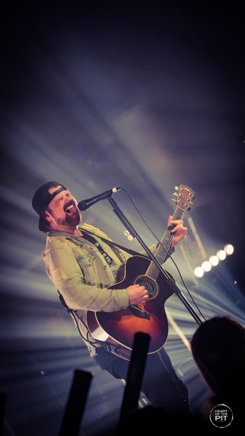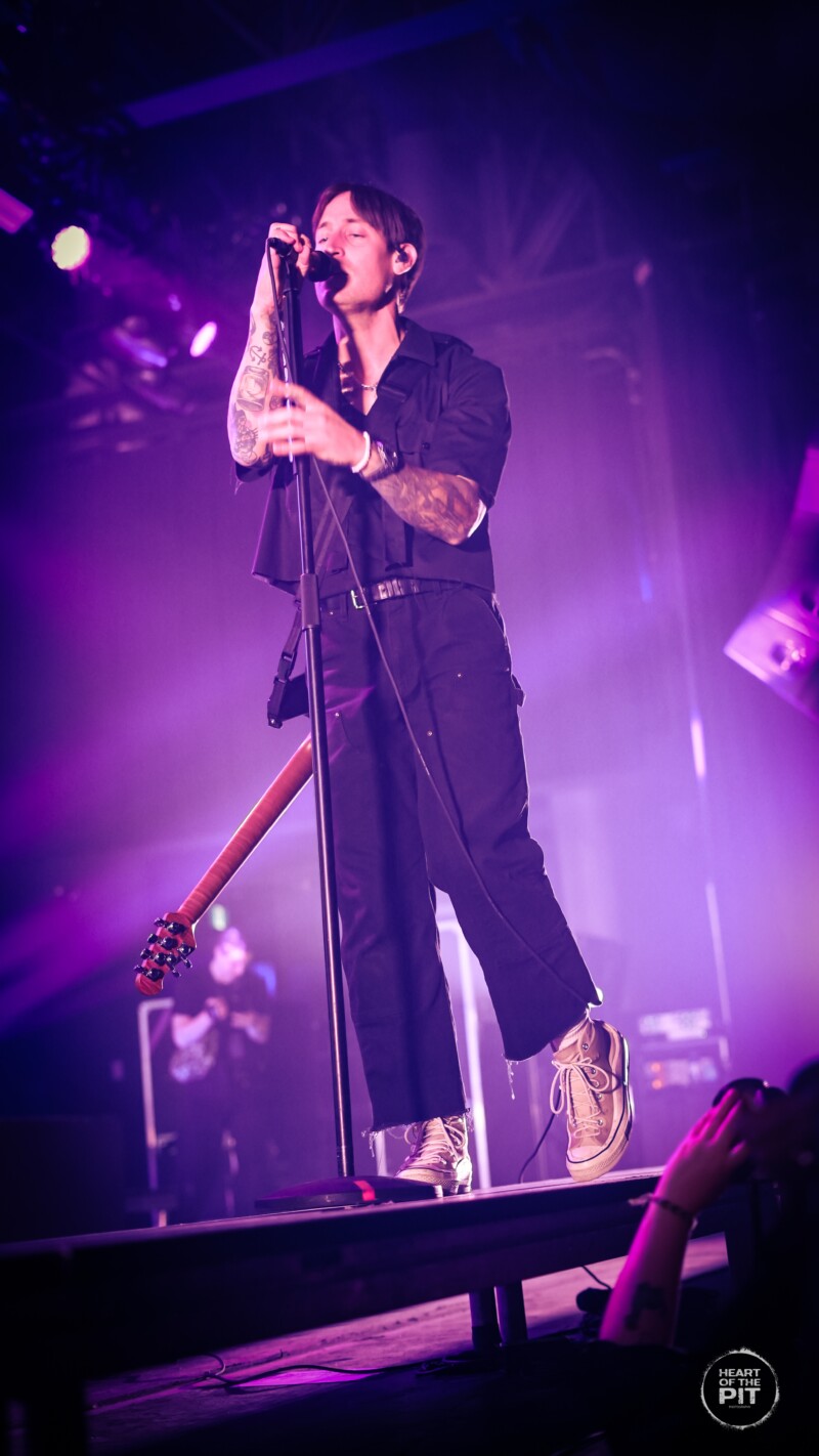 The huge video boards at the back of the stage showed multiple stitched-together home videos spanning from the earliest years playing in basements and first shows to more recent tour video clips and shots from Warped Tours and Festivals with thousands of fans singing along.  The 21-song setlist started with a couple of their most recent releases (Skin and Bones and Confession – which will feature on their 2025 release I hope); moving backwards through their albums playing a couple of songs from each as they went.  We had the pleasure of working our way backwards with them to their roots concluding with 4 songs from Discovering the Waterfront (2005), and finally a couple from When Broken is Easily Fixed (2003).