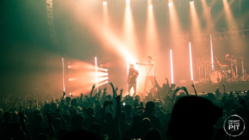 Finally, it was time for the main act. As noted previously, I have a very deep fondness for this band. Our Last Night, formed by brothers Trevor and Matt Wentworth (Lead Vocals and Guitar/Vocals respectively), and Tim Molloy (Drums), in 2004, adding touring Bassist Sean Everett more recently to fulfill that empty role as of 2023. Most well-known for their playful covers of everything from popular pop songs to Disney classics and almost everything in between, they also have a deep collection of original songs. This tour, The Final Tour, is not the end of the band, but rather them deciding to prioritize their family lives over the constant touring requirements. For the vast majority of their careers, they have been entirely self-managed, deciding to produce and release their music without the use of a label or management team. This has allowed them much more freedom with their music than some other groups experience. They have released 12 full-length albums over the course of their career. This tour paid homage to their entire repertoire of releases. At 20 songs, their set list covered some of their most loved covers: “Hot Girl Bummer” (blackbear), “Stay” (The Kid Laroi/Justin Bieber), and “Iris” (Goo Goo Dolls), all mixed together with a selection of originals like “White Tiger”, “Escape”, and of course, “Sunrise”.