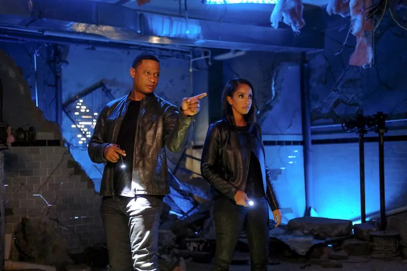 Cindy/Shiv goes toward Eclipso, saying that he owes her, he flicks a shard of the black diamond at her, and a black pool surrounds her starting to drag her in. Stargirl goes to try to help save Cindy but unfortunately can’t stop what is happening. Shade attacks but is badly injured and vanishes. Stargirl uses her staff against him, wounding Eclipso, but the light goes out in her staff — well, that is not good.